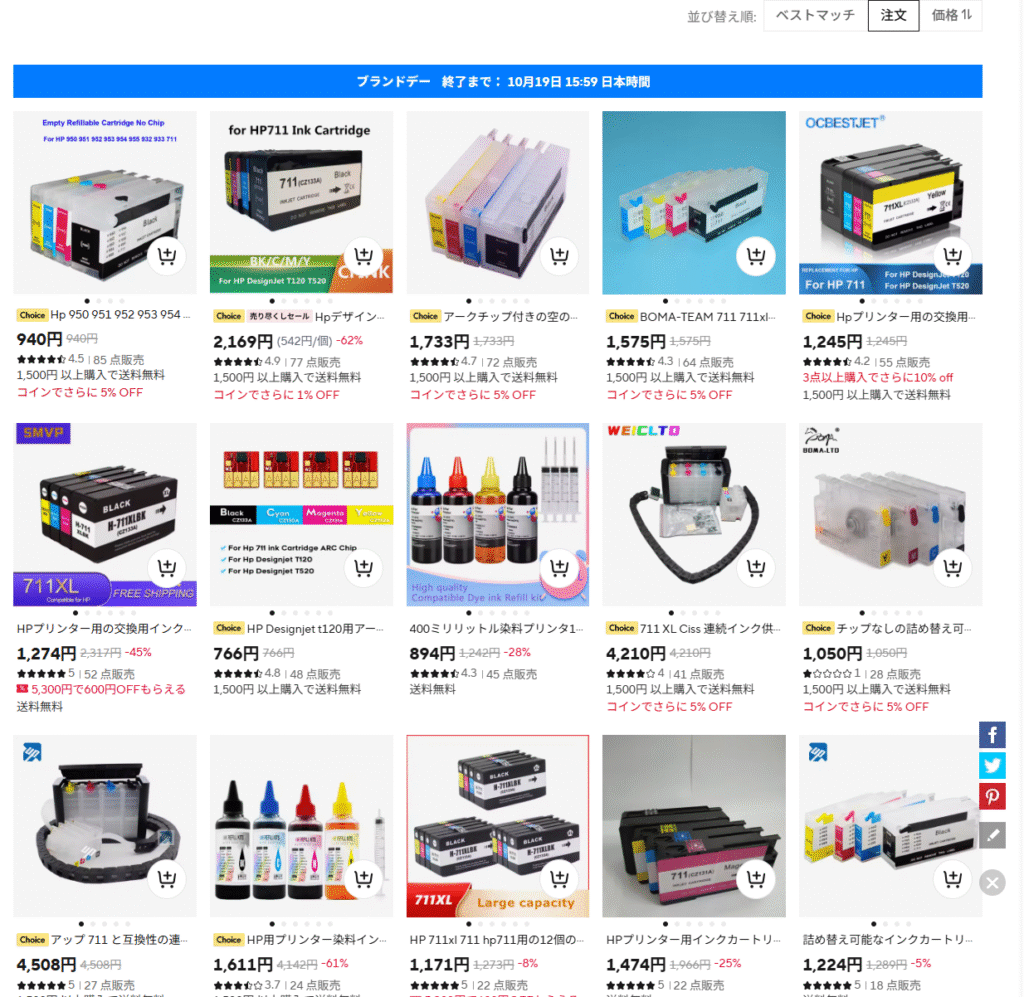 そこで中国製の安いインクを買うことにする。中国製の安いインクを買うサイトは以下を使用する。